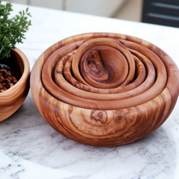 Offrez-vous le plaisir de déguster et de présenter vos aliments de la manière la plus naturelle qui soit en commandant notre lot de 5 bols en bois d'olivier dès maintenant !