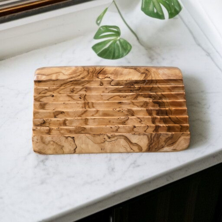 Fabriqué à partir de 100% de bois d'olivier, ce porte-savon en bois d'olivier est écologique et résistant. Il apportera une touche naturelle à votre salle de bain ou à votre cuisine.